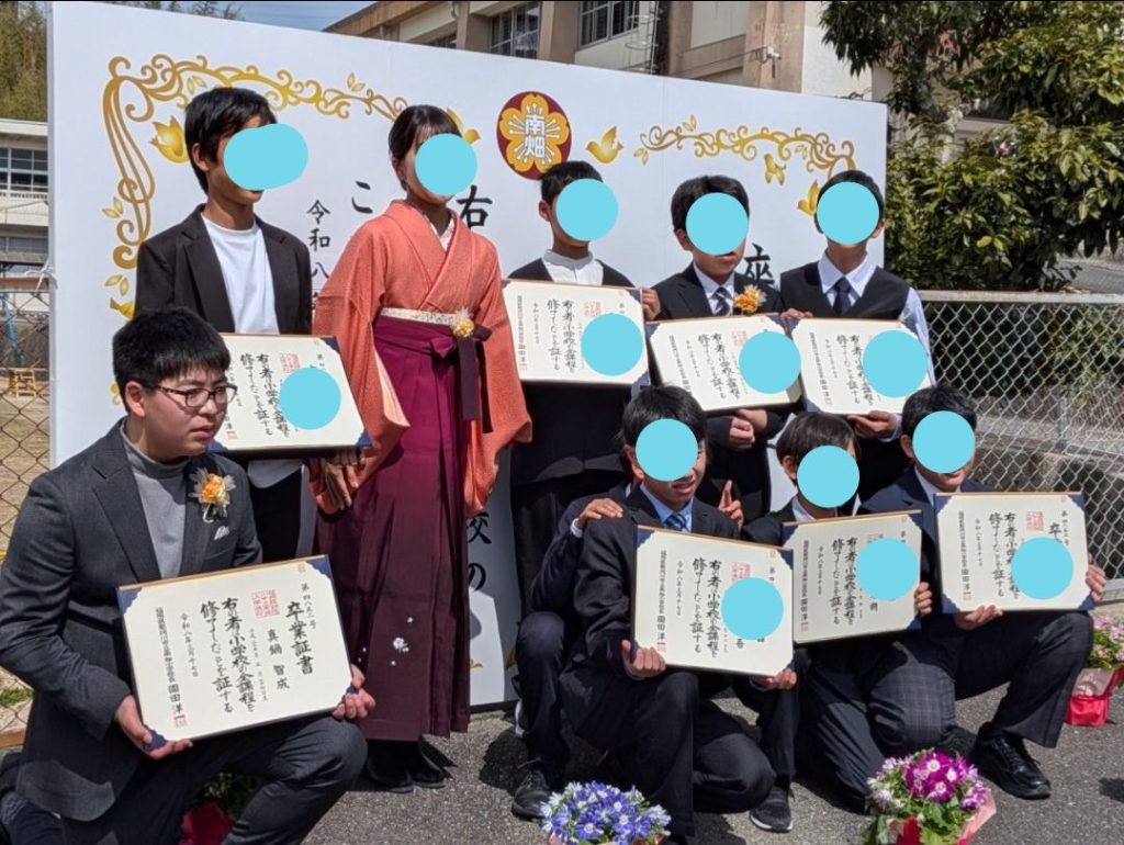 卒業式は多くの地域の方や全校児童に見送られ、みんな晴れ晴れとした笑顔で巣立って行きました😊