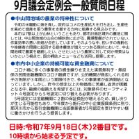 9月4日に開会した那珂川市議会9月定例会も半ばを過ぎ、明後日18日(木)からの3日間、一般質問が行われます。 今回は高齢化や担い手不足による離農で、遊休農地が増えつつある中山間地域の農業に関する提案とコロナ禍に事業者救済 …